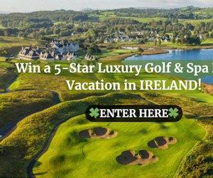 It's one of the best sweepstakes we've ever joined! We've teamed up with our friends at TheVenusEight to give away a 5-star luxury golf and spa resort trip to Ireland. The prize package for two includes round-trip airfare to Dublin, a rental car, two nights at Lough Erne Resort in Enniskillen, three nights at Druids Glen Hotel & Golf Resort in Wicklow, daily breakfast, and one round of golf at Druids Heath.