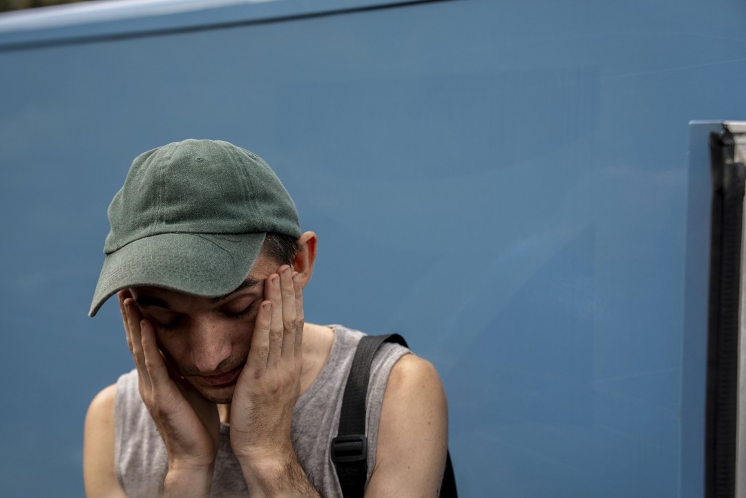 Dmytro Trush, who lost his mother, reacts, while he is being evacuated from the village of Yarova, that was hit by Russian aerial strike, which killed dozens of civilians, in Sloviansk, Donetsk region, Tuesday, Sept.9, 2025. WARNING: Images that follow are disturbing.   (AP Photo/Alex Babenko)