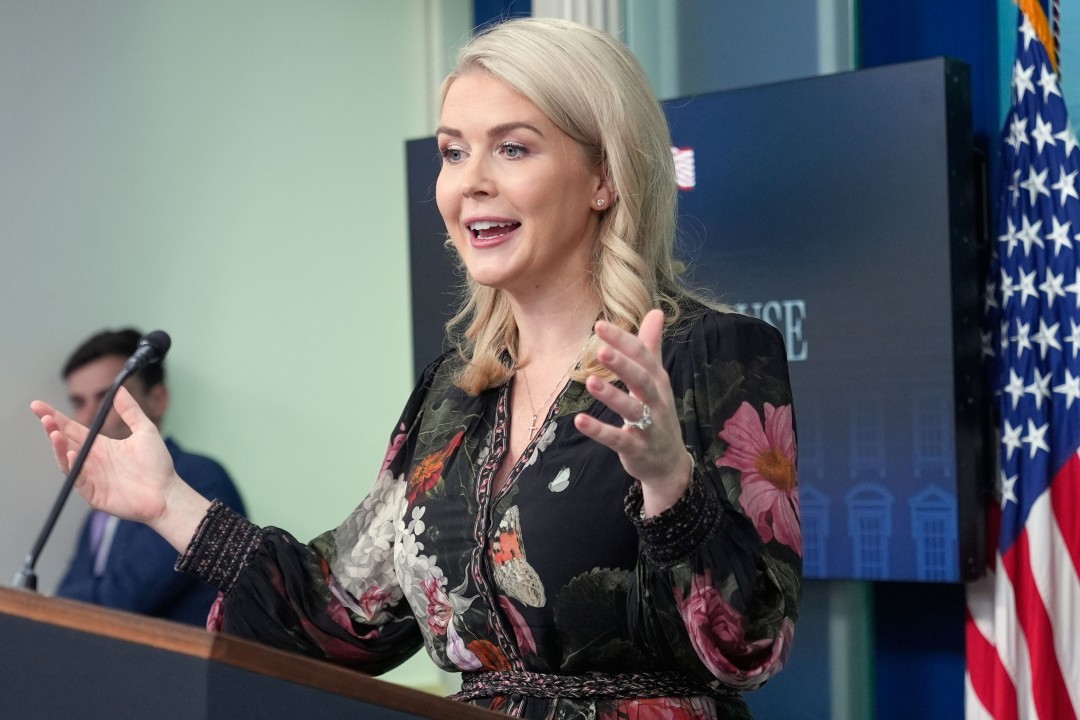 White House press secretary Karoline Leavitt speaks to reporters in the James Brady Press Briefing Room at the White House, Tuesday, Nov. 4, 2025.   (AP Photo/Manuel Balce Ceneta)