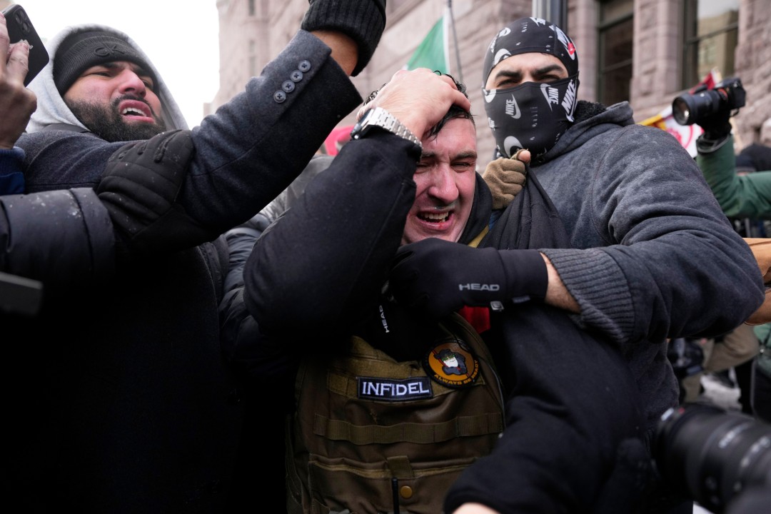 The group chased the pro-ICE demonstrators away and forced at least one member to take off a shirt they deemed objectionable. Jake Lang, who organized the pro-ICE demonstration, appeared to be injured as he left the scene, with bruises and scrapes on his head. Snowballs and water balloons were also thrown before an armored police van and heavily equipped Minneapolis police arrived. "We're out here to show Nazis and ICE and DHS and MAGA you are not welcome in Minneapolis," said protester Luke Rimington. "Stay out of our city, stay out of our state. Go home."